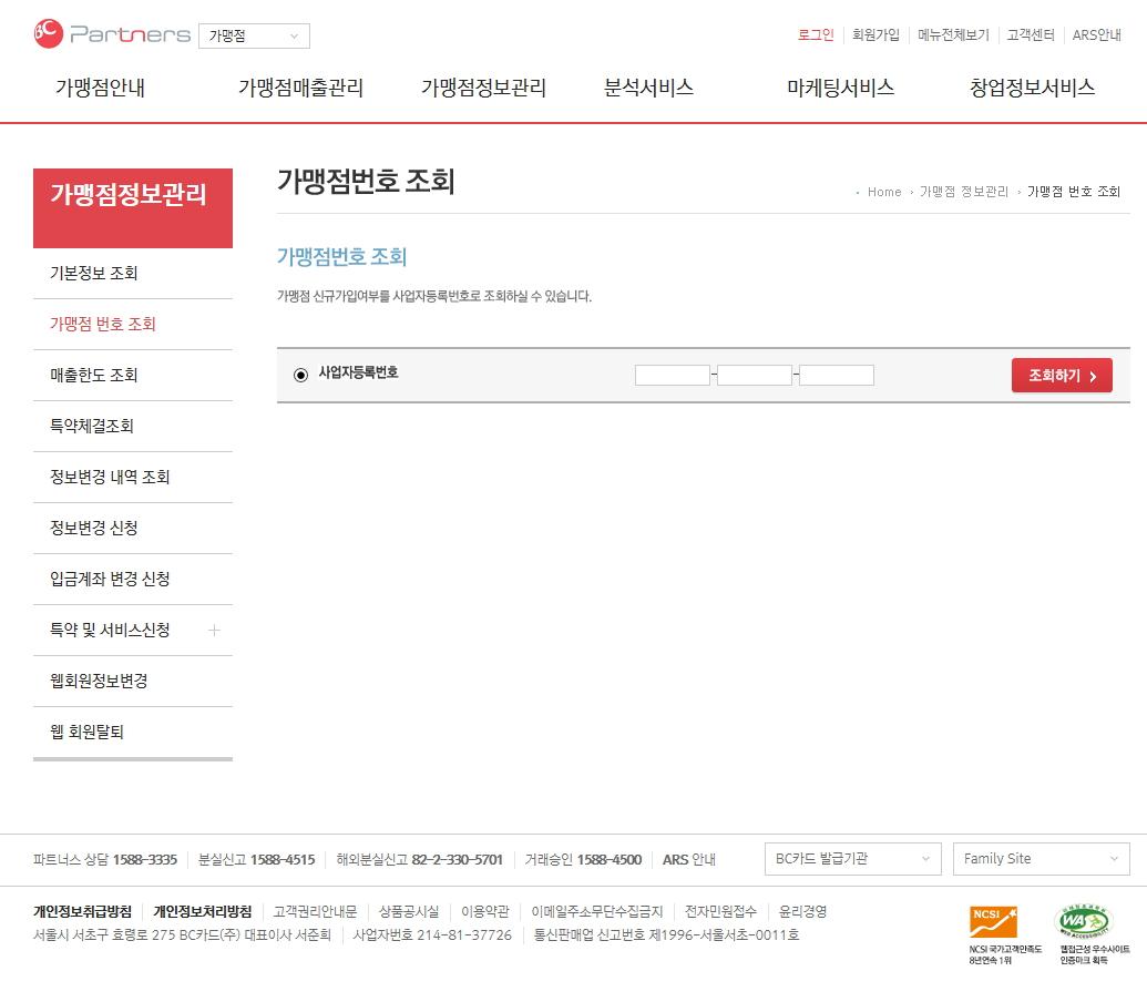 5. BC카드사 가맹점 홈페이지에서 사업자등록번호로 가맹점번호를 얻을 수 있습니다.