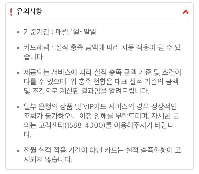 1. 카드부가혜택은 카드설명서를 읽어보세요.