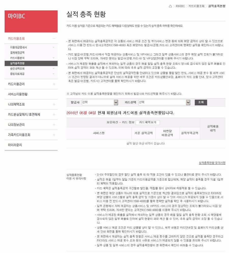 2-1. 카드실적충족 확인은 BC카드 홈페이지를 통해 확인하세요.