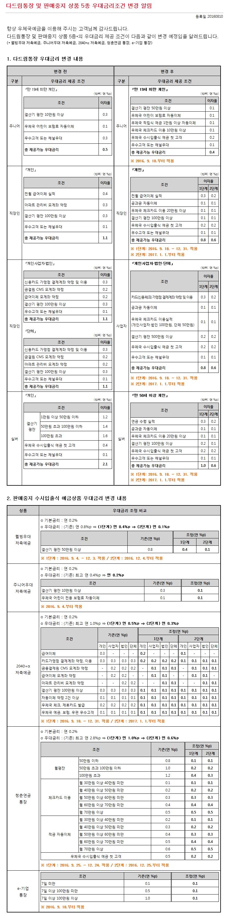 SHIFT님의 글 : 우체국 다드림통장 개악 소식입니다.
