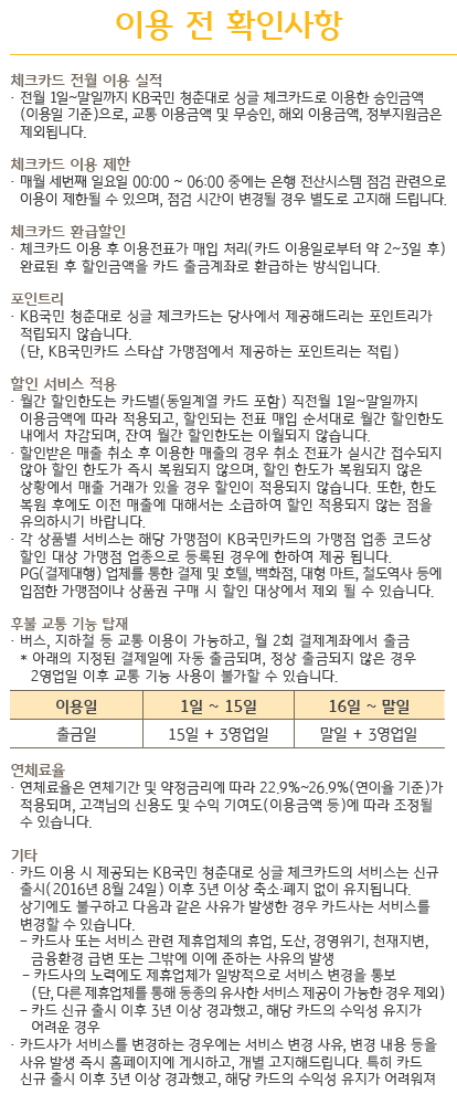 KB국민카드]청춘대로 싱글 체크카드 안내본 > 재테크포럼