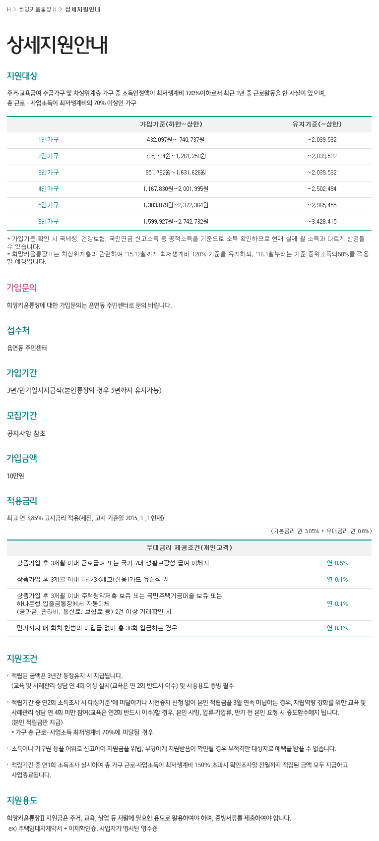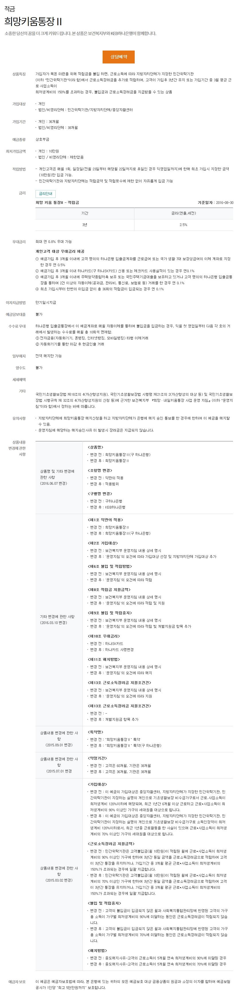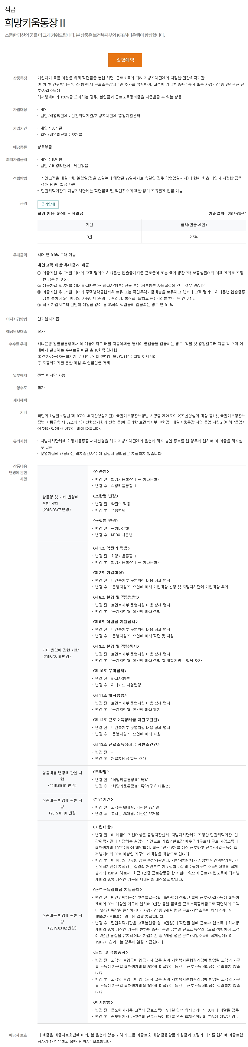 하나은행 희망키움 2 안내 페이지