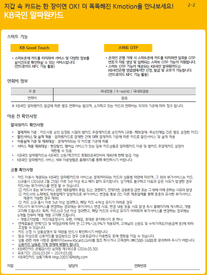 KB국민카드]알파원 카드 출시(9/2-), 안내본 추가