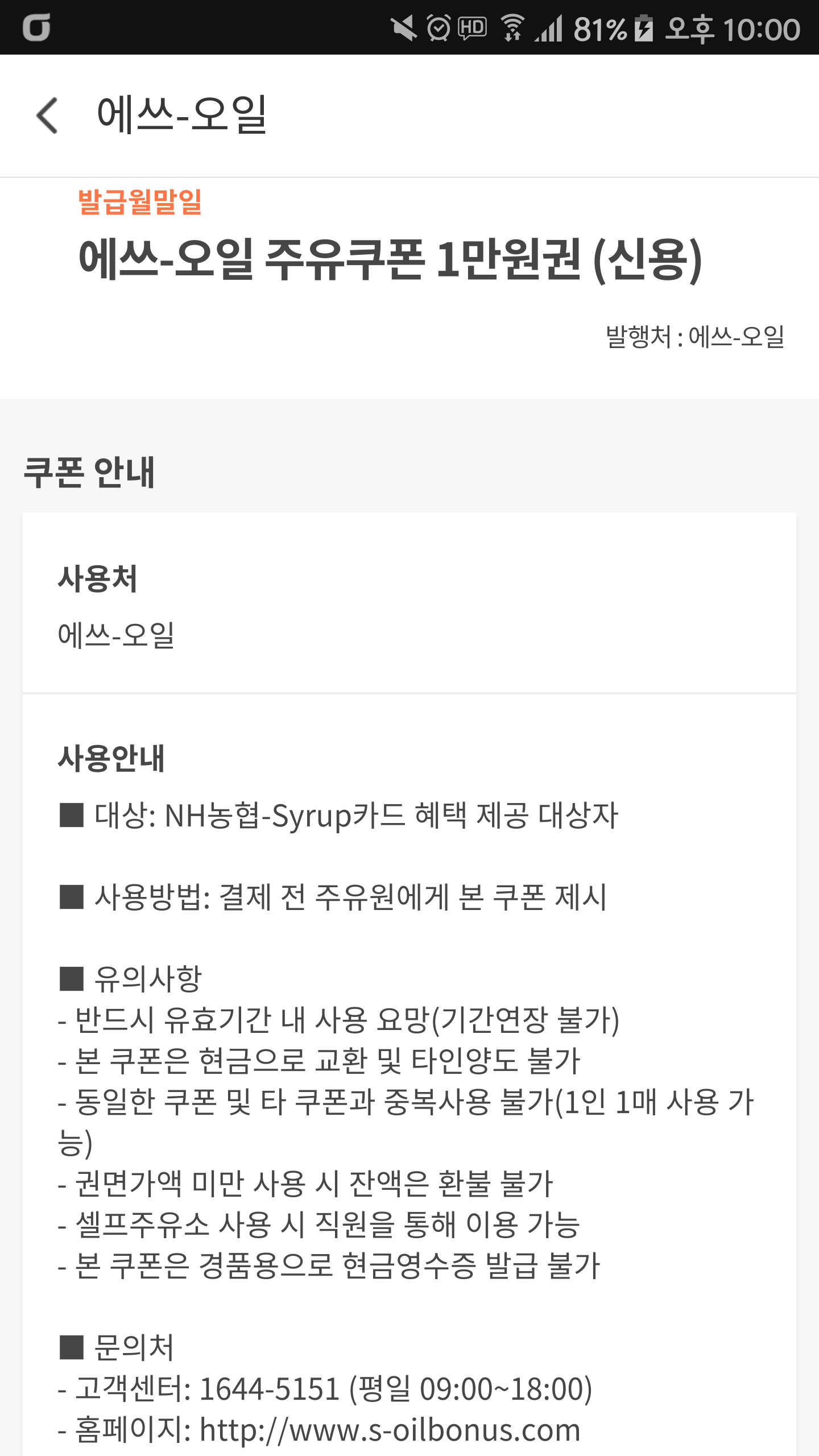 주유 3사 중복 가능이라고 해놓고 쿠폰 상세내용에는 중복 불가입니다.