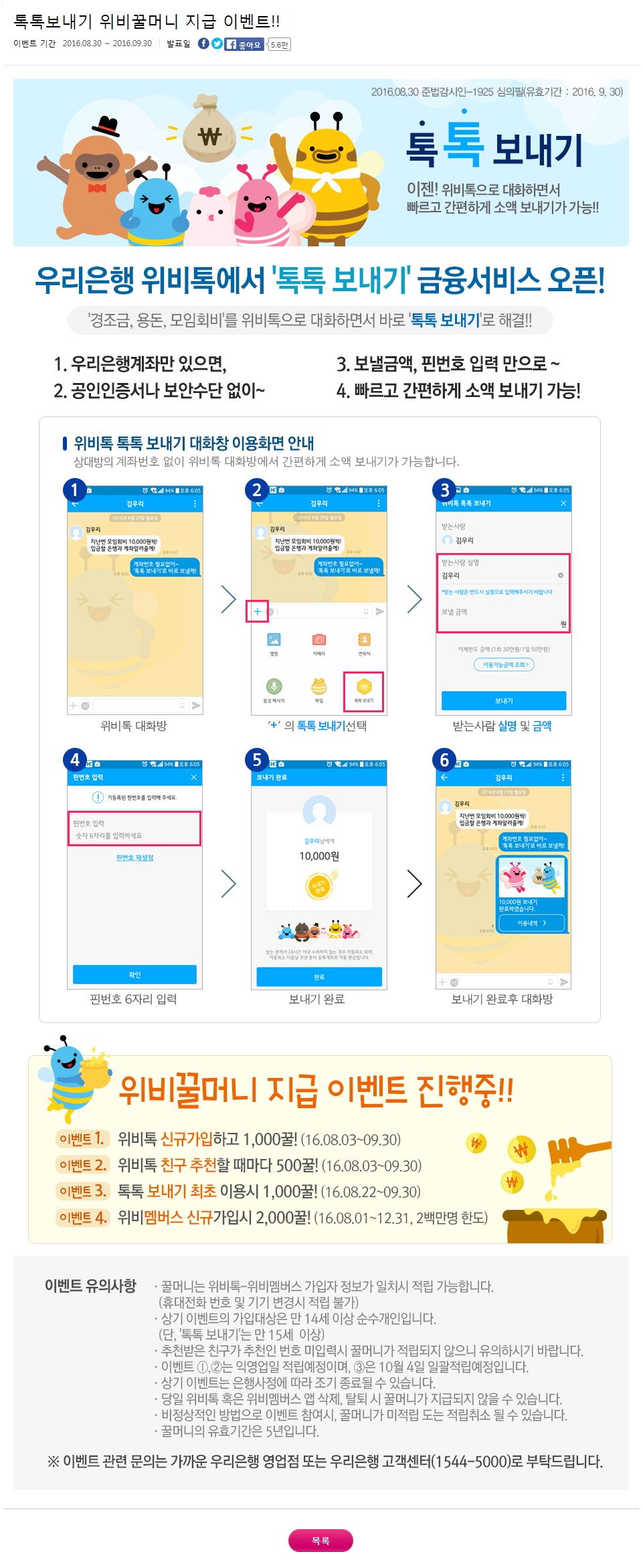 우리은행]위비톡 '톡톡보내기' 최초 이용시 1,000꿀(8.22-9.30) > 재테크포럼