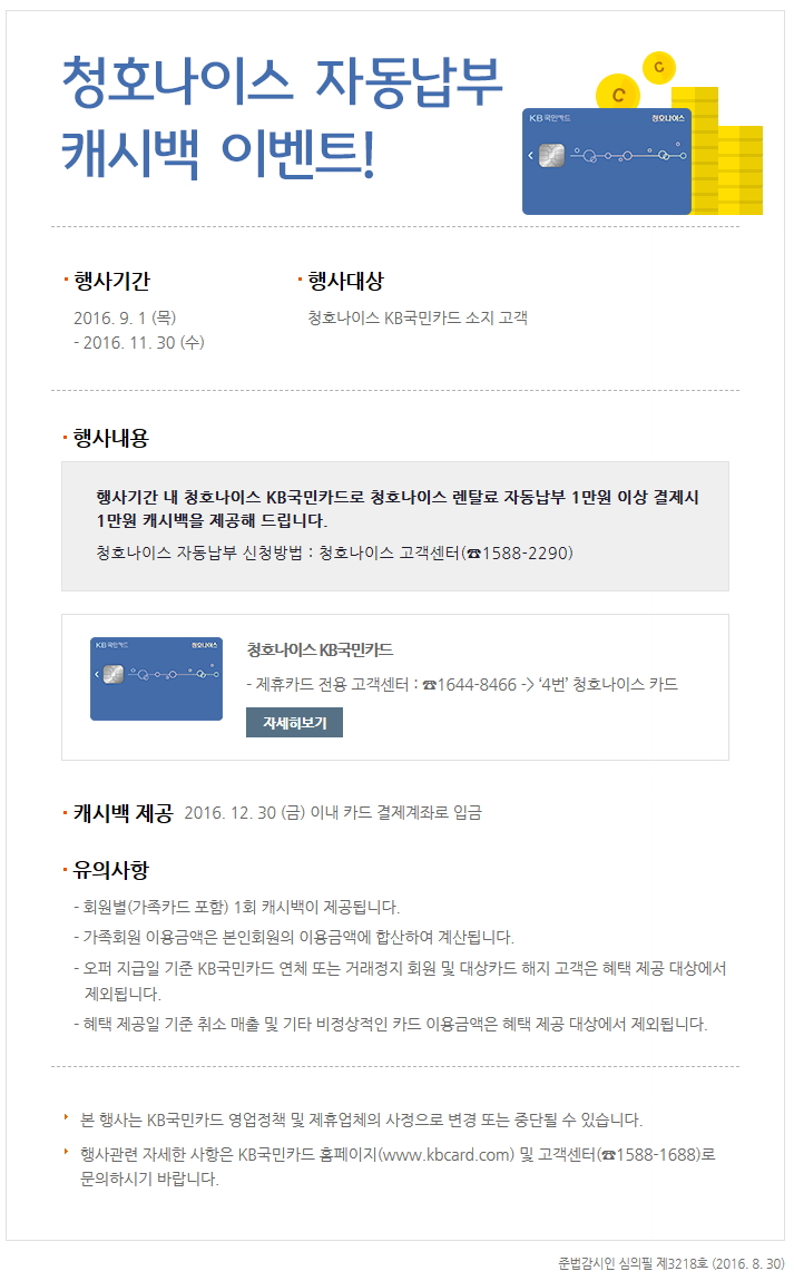 KB국민카드]청호나이스 제휴카드 안내본, 이벤트(9.1-11.30)