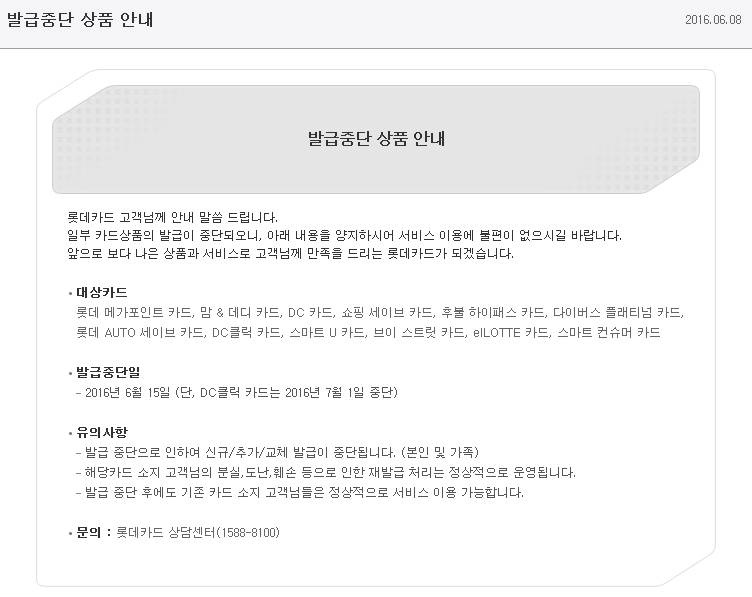 - 문의 : 롯데카드 상담센터(1588-8100)