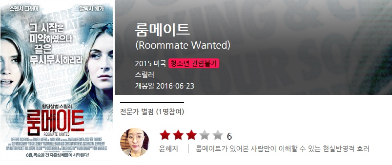 룸메이트는 인간관계 트러블을 소재로 하는거 같은데 장르가 스릴러네요? ㅋ