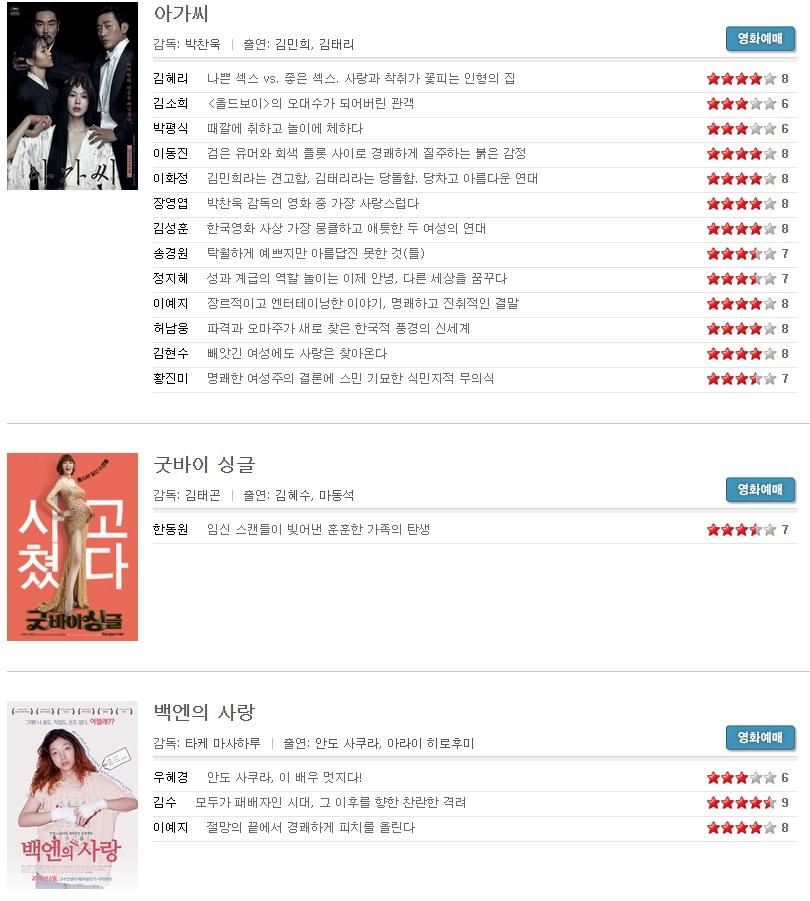 곡성이나 아가씨처럼 상영 2주차 넘어서 다시 뜨는건 새롭게 추가된 평이 있을때 그런거에요