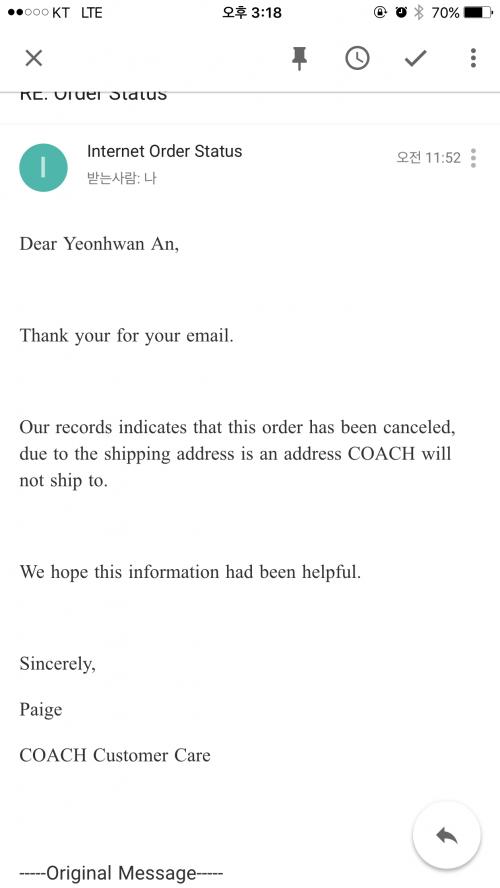 어제 코치 공홈 주문 문의 글 올렸었습니다.