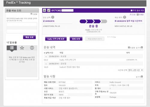 하지만 참조번호로 페덱스 조회하면 배송 중으로 나옵니다.