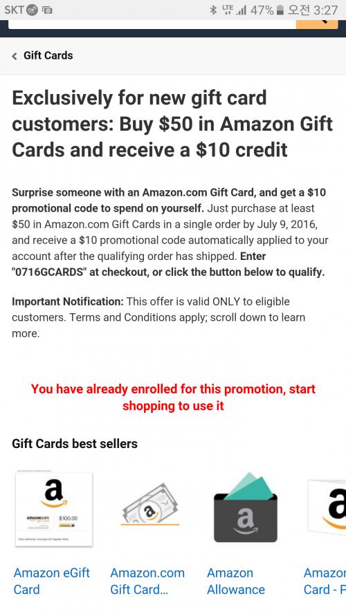 그래서 아마존 e기프트카드 50을 구매하였습니다