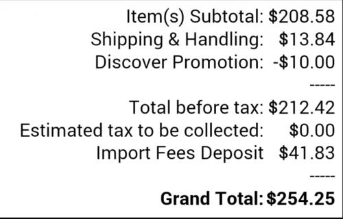 쿠폰이 아닌 프로모션이라 210달러까지는 괜찮지않을까 했는데 deposit이 붙어버렸습니다. (배송은 한국 직배입니다.)