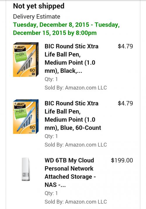 다름이 아니라 199달러짜리 마이클라우드를 구매하였는데 디스커버리 프로모션 10달러짜리가 있어서 bic볼펜 4.79짜리 두개를 같이 주문하였습니다.