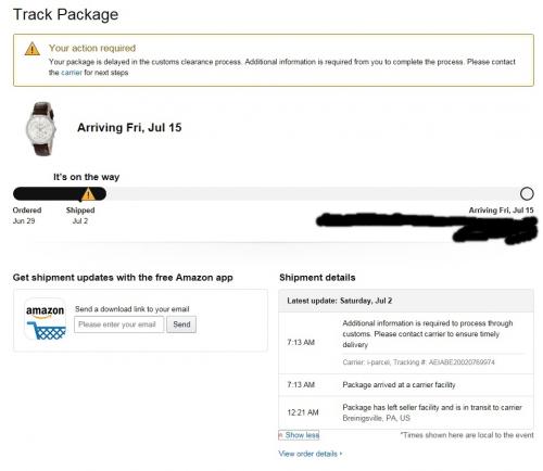 직배 배송비가 많지 않아서 직배로 배송을 했는데 아마존에 다음과 같은 메시지가 뜹니다.