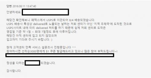 배대지에서 하루만에 온 답변은 아래 사진과 같습니다.