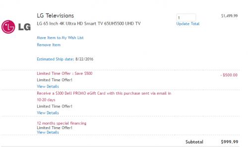 델 공홈에서 65uh5500 모델을 999달라 기프트 300불 증정인데