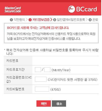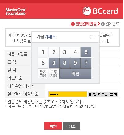 국내 온라인 결제때처럼 카드인증하고, 일반결제 비밀번호를 등록하고 나서