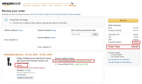 <1. 우리나라 주소변경/ 2. 결제화폐 파운드 변경후 최종계산>