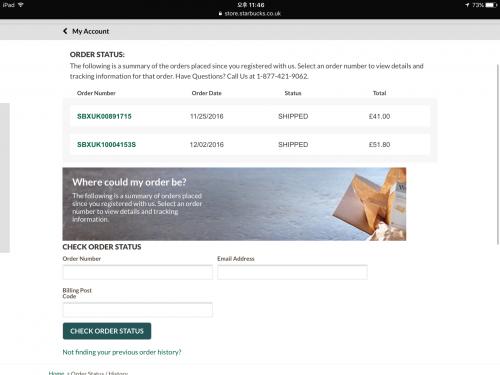 11월 25일 쯤에 스타벅스 영국에서 커피를 좀 주문했는데요,