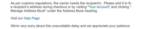 수신자 주소 입력하라는 거 같은데 어디에 입력을 해야는지 몰르겠네요..ㅠㅠ매니지 어드레스 북 들어가서 수정만 하면되는건지..고수님들 방법 좀 부탁드립니다..애기 로션이 못오고 있네요~아래사진은 현재 배송상태에요ㅠㅠ