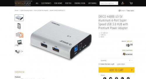ORICO H4888 U3-SV Aluminum 4-Port Super Speed USB 3.0 HUB with Premium Power Adapter($9.99) > 해외포럼