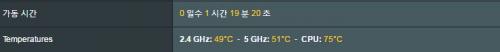 CPU 온도가 좀 높은 듯 싶은데 다른 분들도 idle 상태에서 온도가 이런가요?? (75도)
