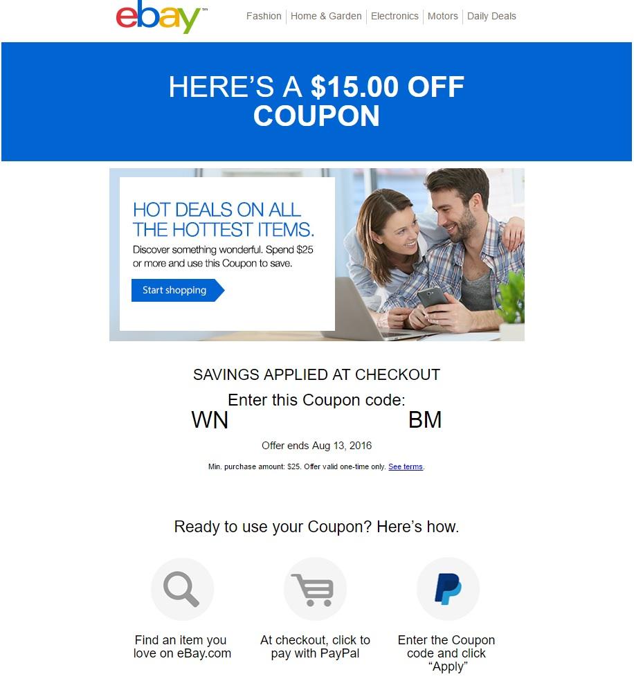 $25 이상 $15 할인 쿠폰을 이베이에서 보내주었네요.. 아마 개인코드인듯합니다.