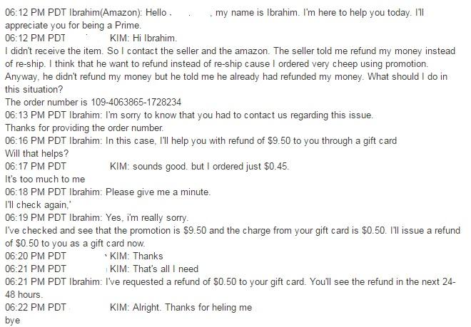 다시 라쳇을 하고 자초지종을 설명하니 아마존에서 환불해준답니다.