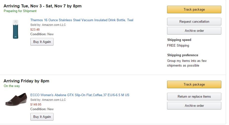 저는 리바이스 청바지 5개 시켰는 데, 5개 다 따로 배송...5개까지 무료로 취합해줘서 다행이었습니다만... |
