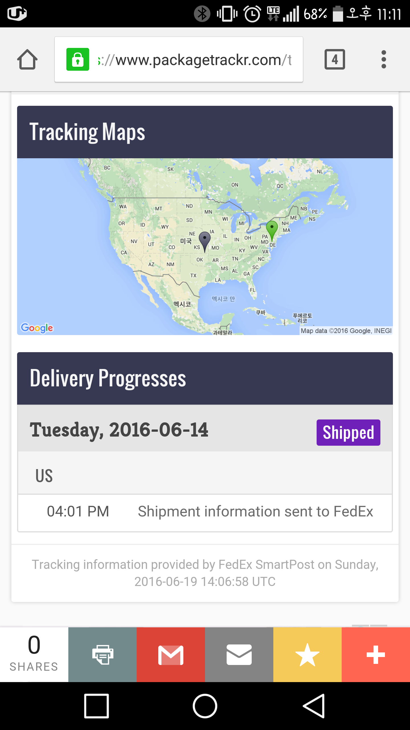 내일 집으로 도착할것 같습니다. 인천공항에서 택배사로 인계됐네요. |