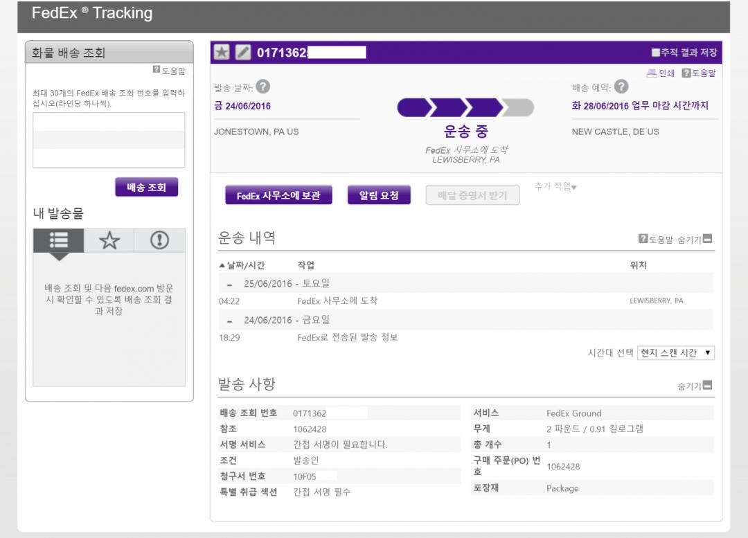 그 주문번호로 페덱스 참조번호로 배송조회하시면 됩니다.