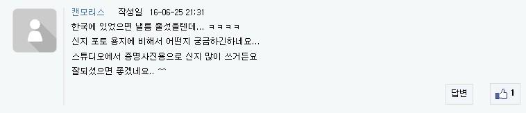 캔모리스 선생님께서 '신지 포토 용지와 비교하면 어떤지 궁금합니다.' 라고 적으셔서