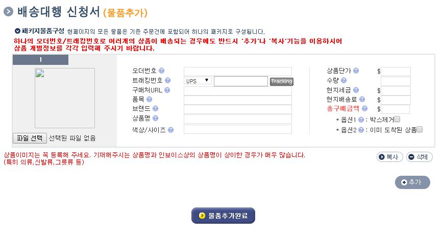 - 배송신청서 작성이 편하진 않은것 같네요
