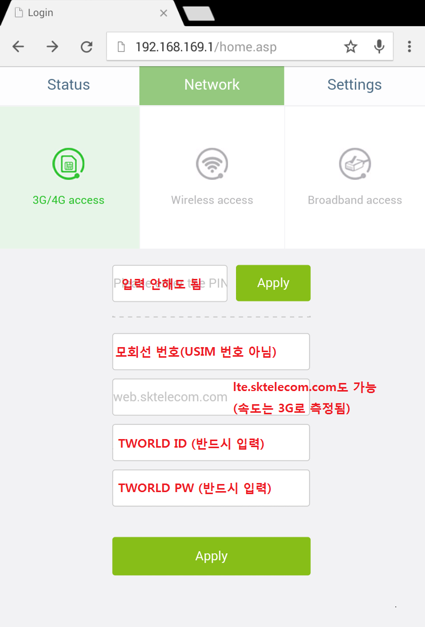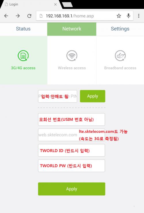 제가 지패드 7.0으로 SKT [3G 데이터 함께쓰기 Basic] 유심을 사용중이 었기에 마침 이걸 이 라우터에 꽂아서 사용 가능한지 테스트 해보았습니다.