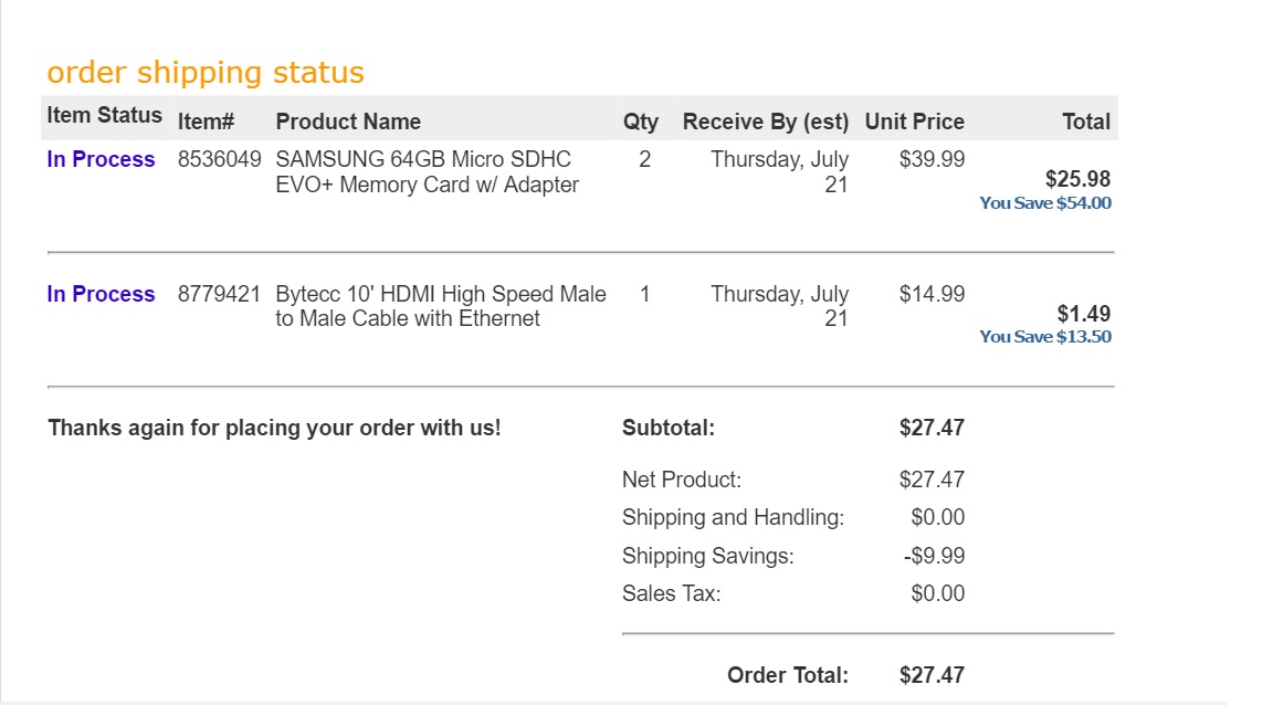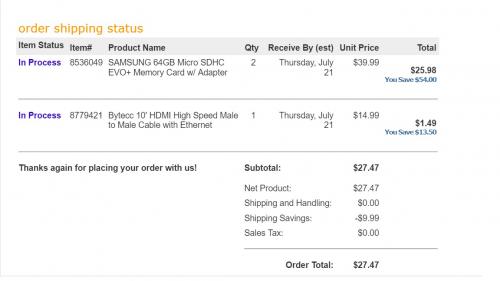 SD 카드만 2개 사면 배송비 2.99달러 붙어서 28.97 달러