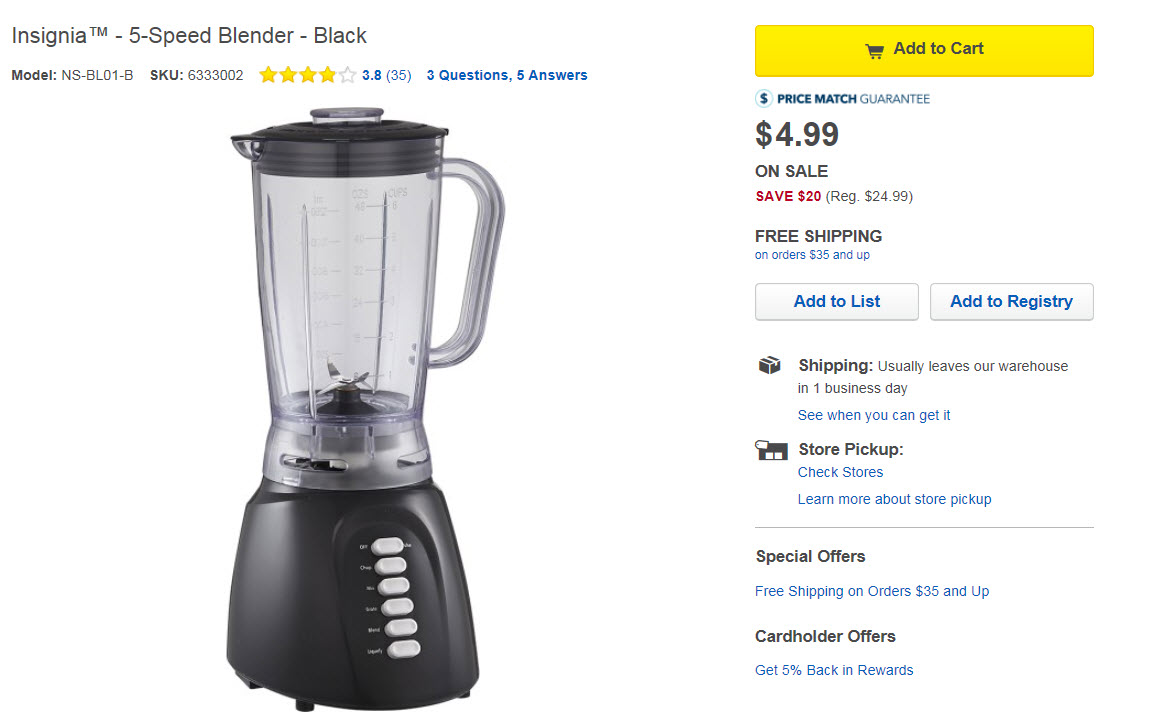 베스트바이에서 5달러짜리 블렌더가 나왔네요.