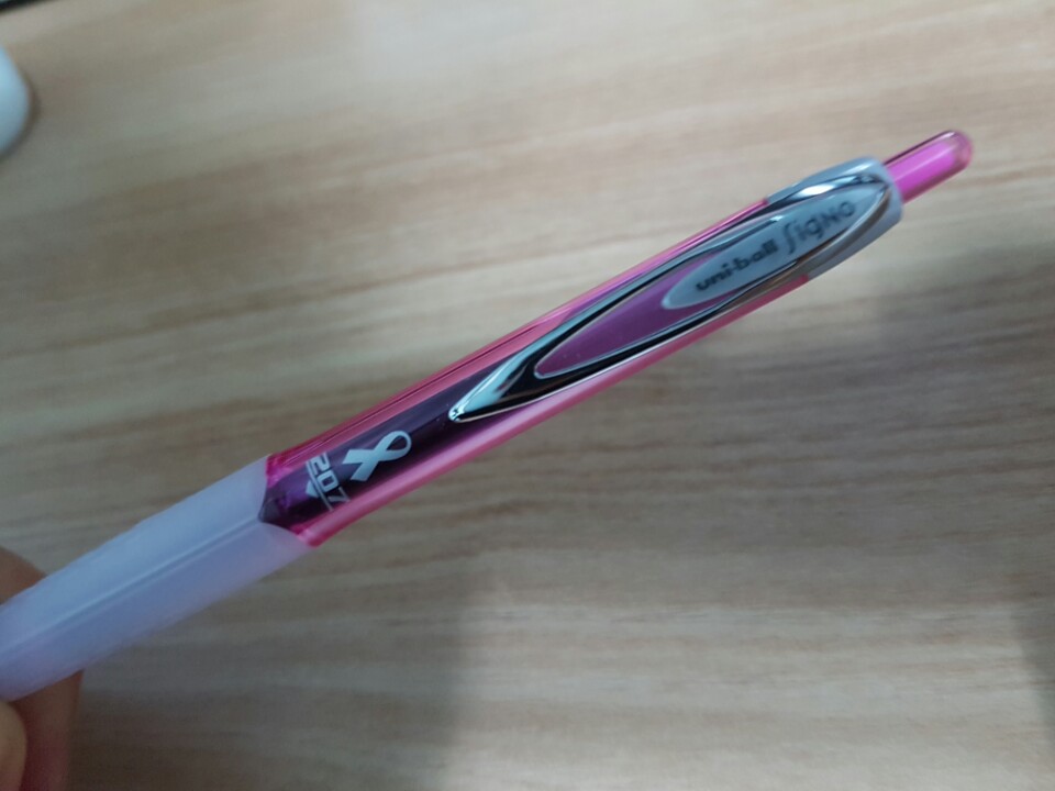 리본은 옆에 설명 보니까 City of Hope라고 유방암 연구 및 치료하는 프로젝트에 볼펜 하나 팔 때마다 유니볼에서 0.2달러를 기부한다는 내용이네요. |