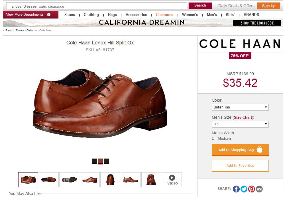 Tan 색상은 35.42달러구요 아직 대부분의 사이즈가 남아있습니다.