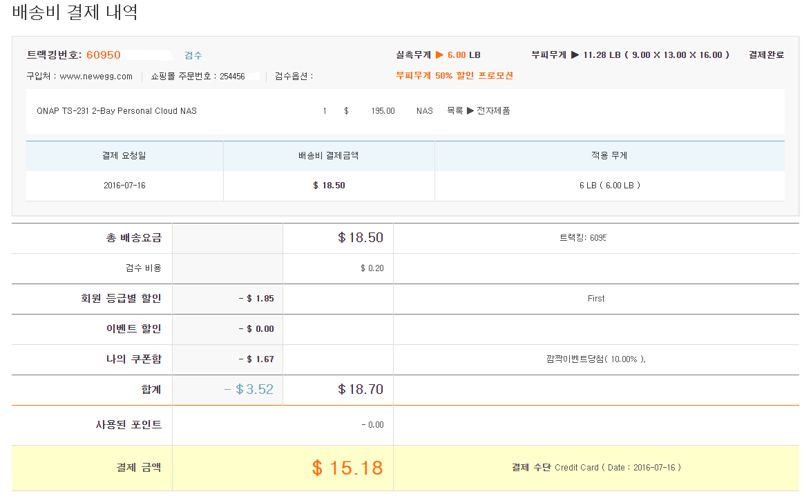 부피무게 50% 할인이벤 안했으면 진짜 크게 당할뻔했네요..