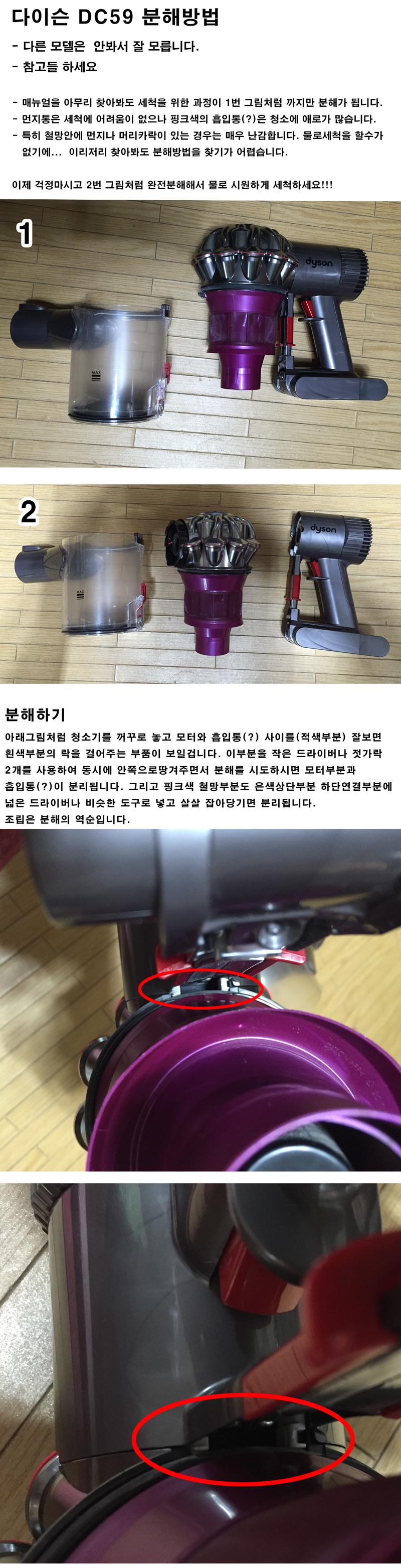 다이슨 DC59(다른모델도 거의동일)를 사용하다가 먼지통과 필터부분(철망부분)은 분해되어서 물세척이 가능하나