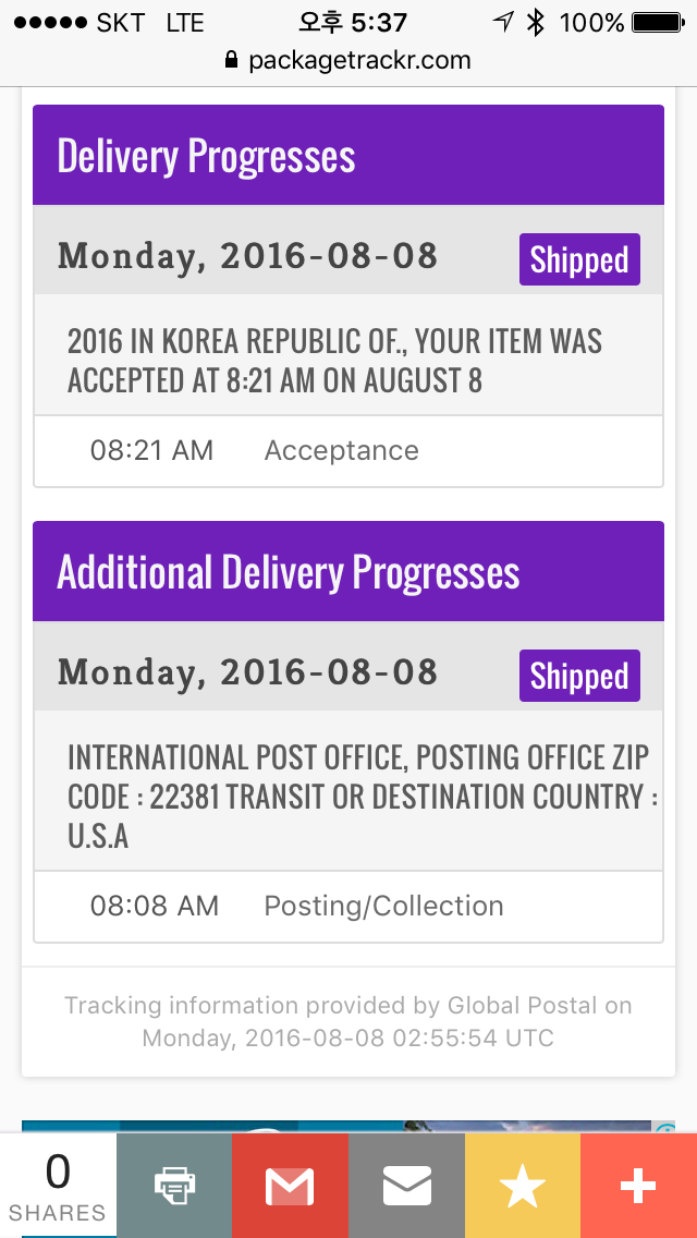 저도 배송출발지를 보고 깜놀 했습니다. |