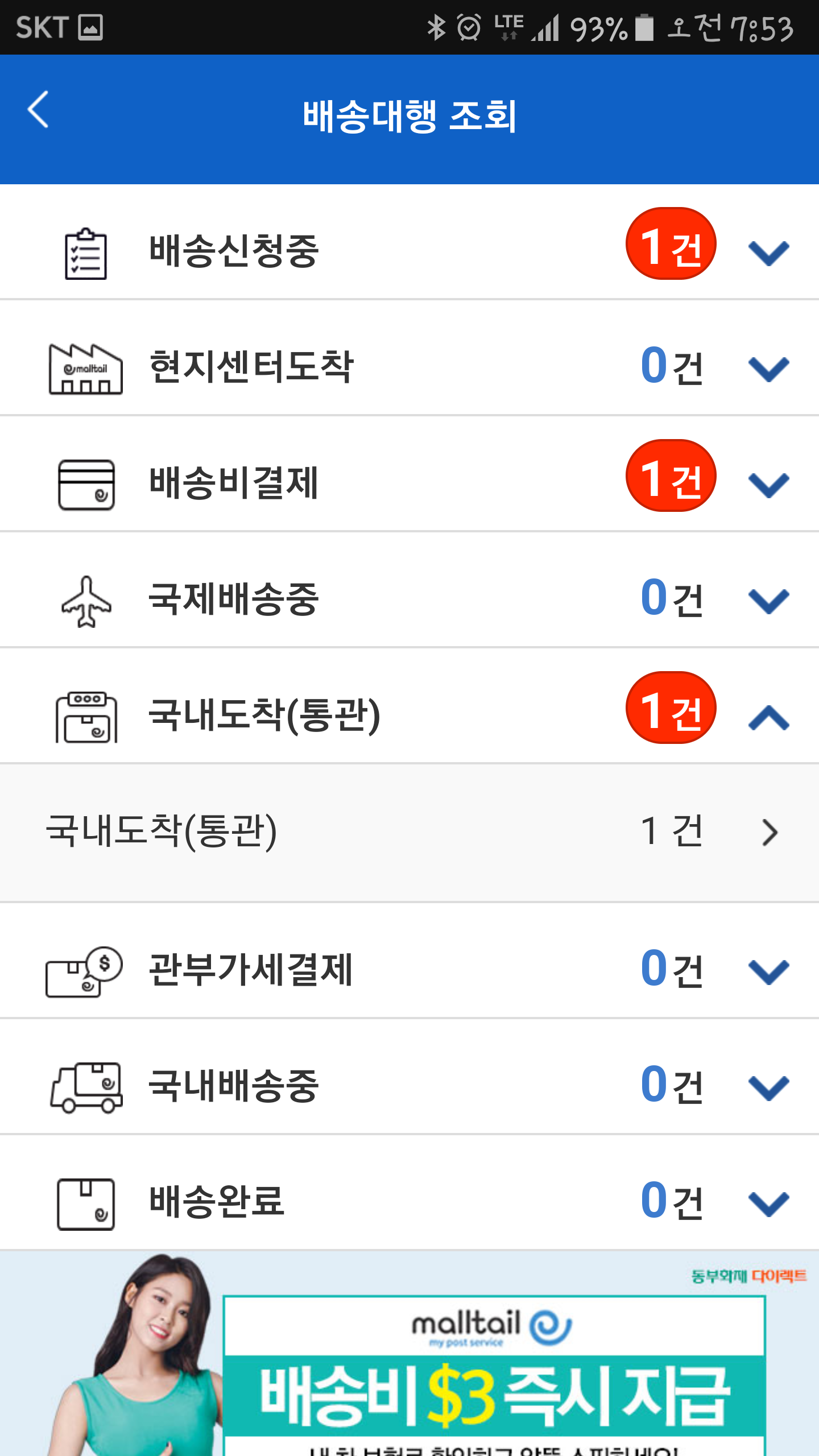네~ 국내 도착만 같은날에 안하면 됩니다.