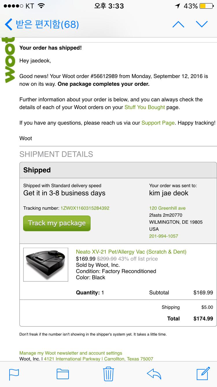 Woot 니토 청소기 배송오류