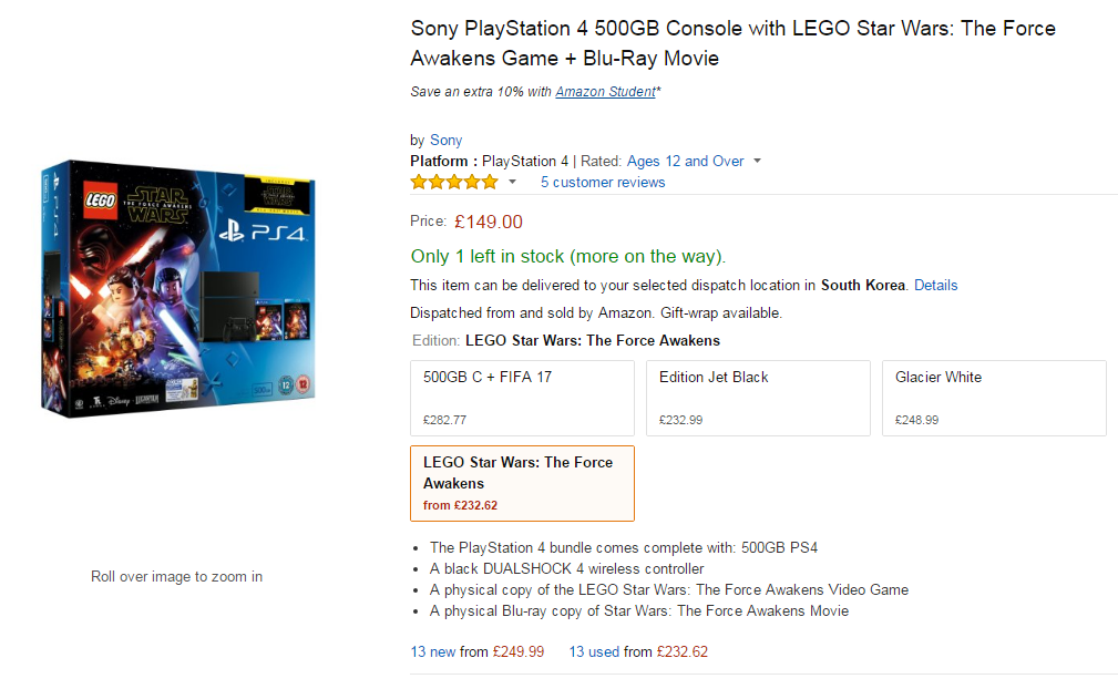 요건 149파운드짜리 PS4 500 + 레고 스타워즈?