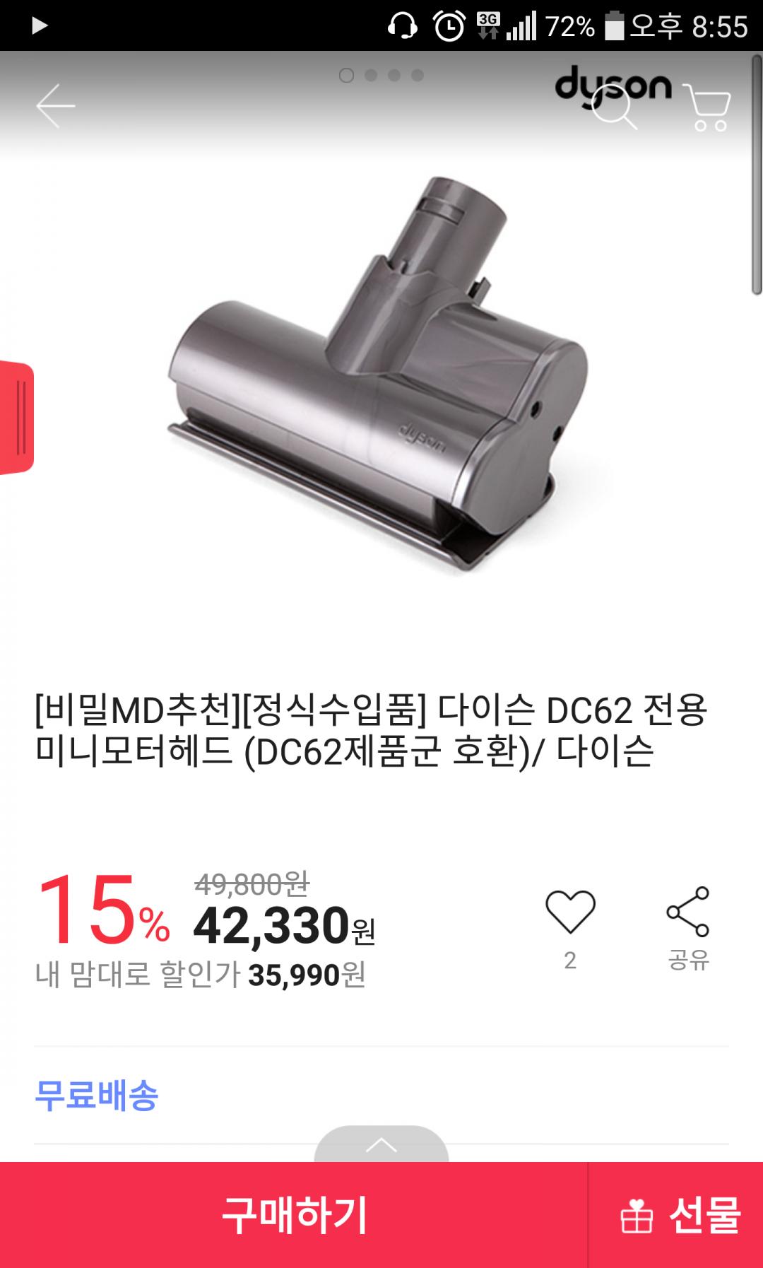 Dc62(국내판)전용이라고 되어 있는데, 착탈부분이 이번에 베바에서 구매한 다이슨이랑은 맞는 것처럼 보여서..일단 질렀습니다. 받아보고 후기 남길게여~ |