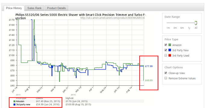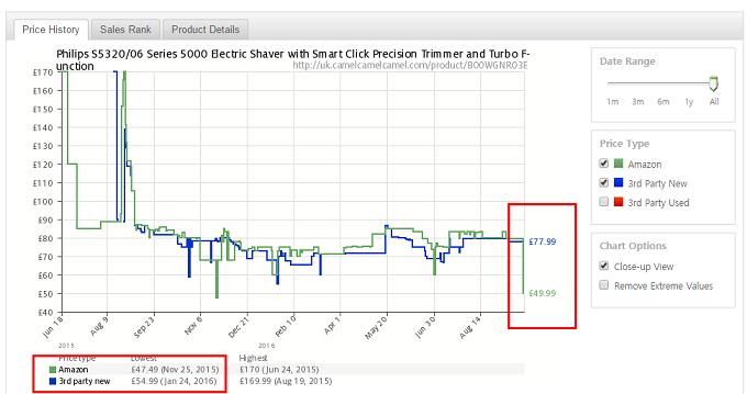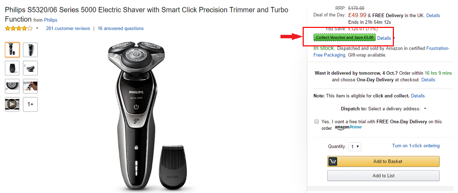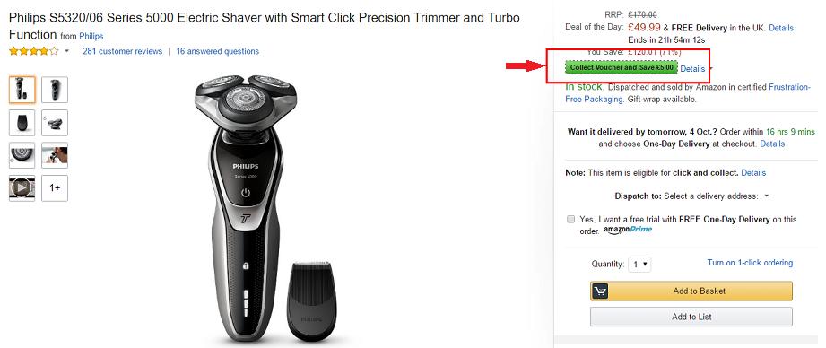 [amazon.uk] (면도기) Philips S5320/06 Series 5000 (£36.86, £13.19) 총 £49.85