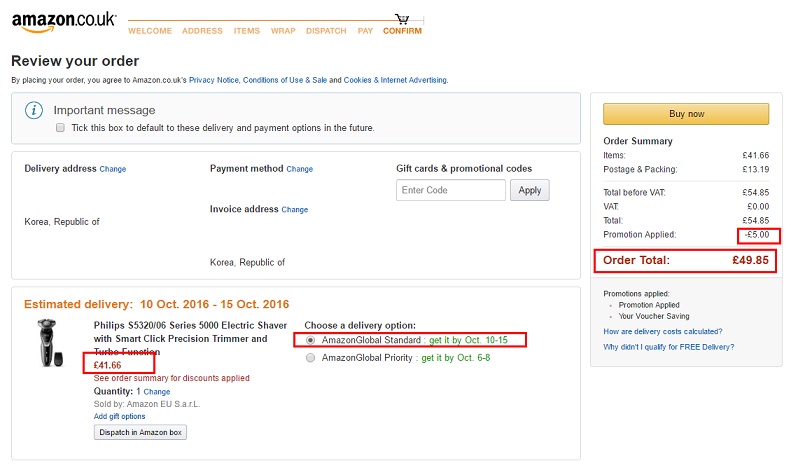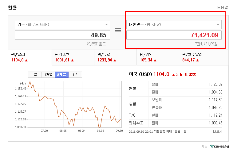 <1. 우리나라 주소변경/ 2. 결제화폐 파운드 변경후 최종계산>
