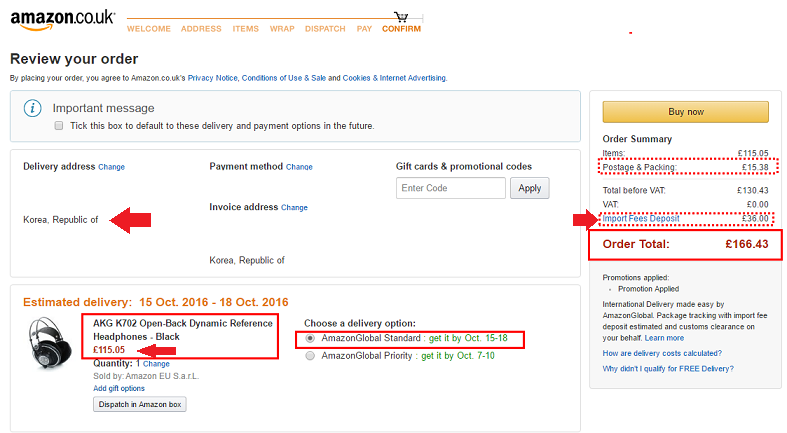 <제품가+배송비+디파짓 포함 계산할 경우 예상> £115.05 + £15.38 + (디파짓)£36 = £166.43