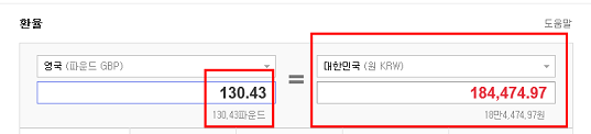 < 1. 우리나라주소변경, 2. 결제화폐 파운드 변경후 최종금액>